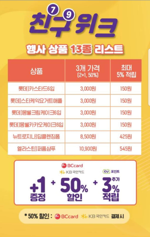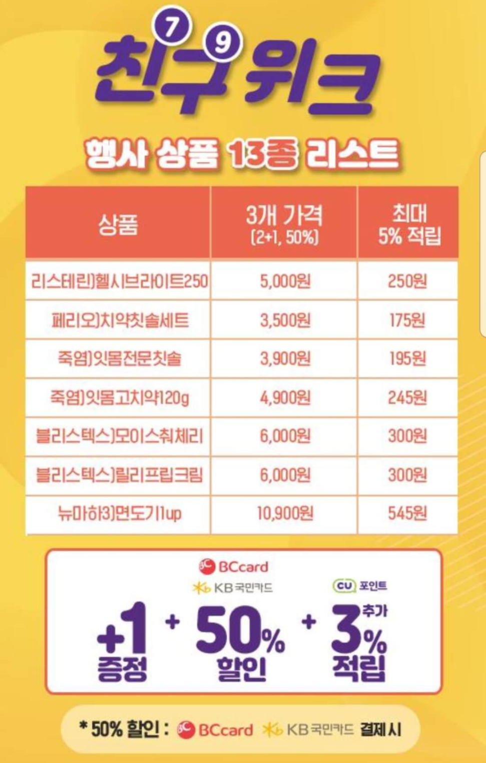 저녁 먹고 잠시 쉬는데 톡이 울린다. 지인의 톡방에 간식 득템 하라는 톡과 함께 링크되어 있던 CU친구위크.
