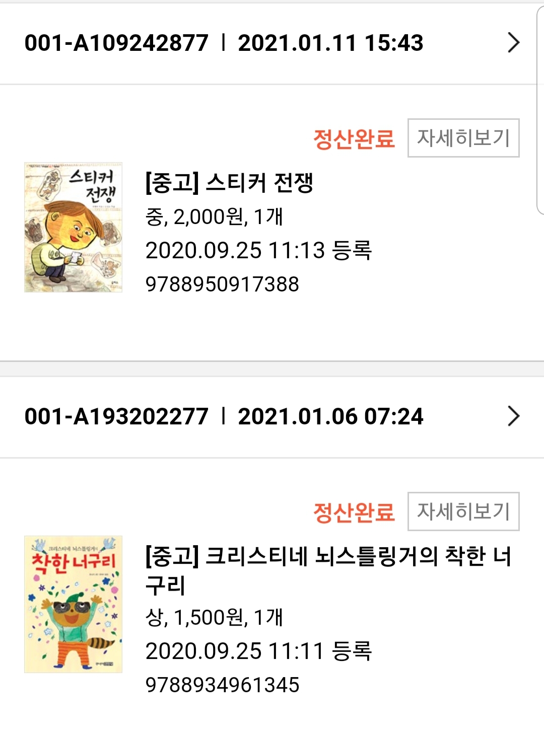 혹시라도 안 읽은 책 있으면 포장하는 번거로움이 있지만 코로나로 집콕하는 중이니 소소한 부업으로 이용해 보면 어떨까 한다.