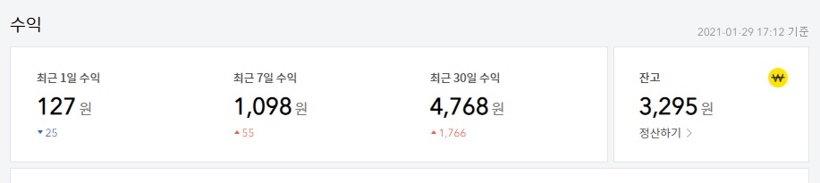 애드핏보다는 애드센스 수익이 더 좋음을 몸소 느끼고 있으며 2달 다 되어가는 수익들의 합보다 1월 알라딘 중고서점에서 책 팔아 번게 더 많다 ㅋㅋ