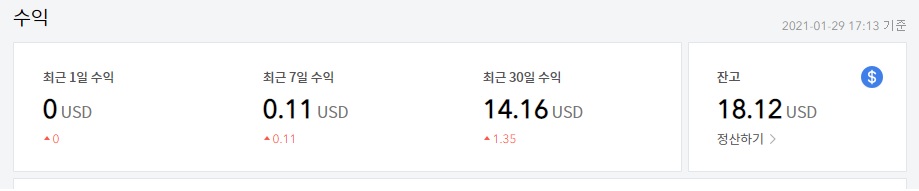 11월 티스토리 시작, 12월 애드센스와 애드핏 달린지 이제 1달 반 정도 되어가는 나의 수익은 다음과 같다.