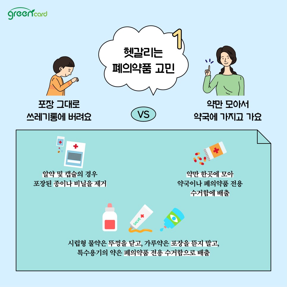 의약품의 오남용을 막고 환경보호를 위해 폐의약품 올바른 처리방법을 숙지하시길 바랍니다.