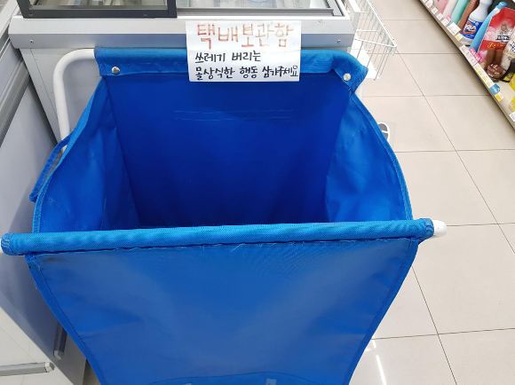 그리고 파란 택배보관함에 살포시 내려놓으면 알라딘 지정 택배 편의점 이용하여 알라딘 중고서적 택배 발송 끝입니다.