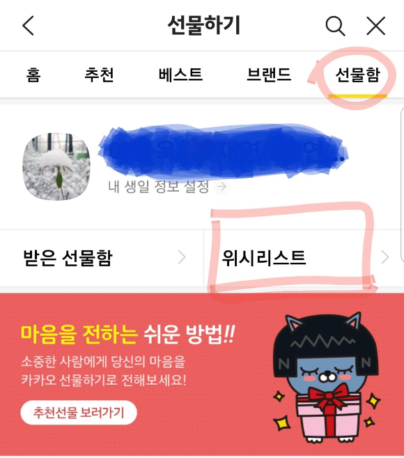 카카오톡 선물하기 위시리스트 설정하는 방법