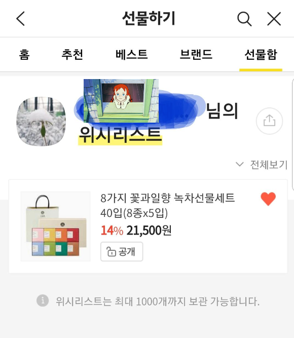 친구 공개라는 부분을 클릭해야 상대방이 저의 위시리스트를 볼 수 있습니다.
