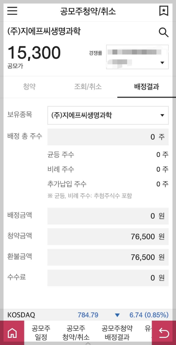 지에프씨생명과학 공모주 최종 균등배정수량 결과 확인 (feat. 대신증권)
