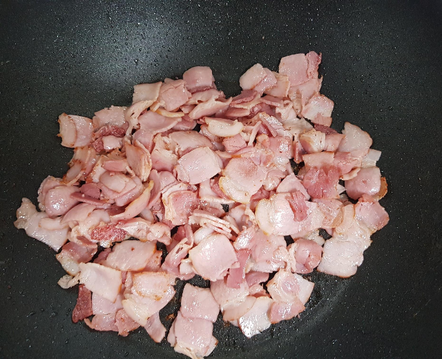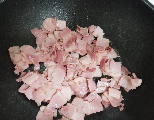 2. 베이컨 기름이 있기 때문에 따로 기름을 두르지 않고 베이컨을 먼저 볶아줍니다.