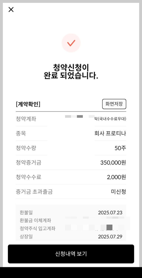 프로티나 공모주 청약완료(feat. 한국투자증권 )