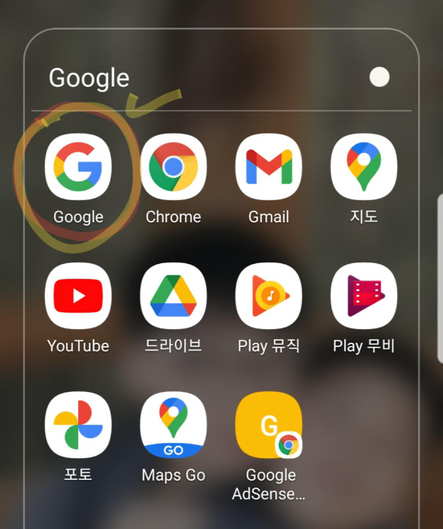 전 구글 애드센스 수익 바로가기 아이콘을 구글 폴더 안으로 쏙 집어넣어줬습니다.
