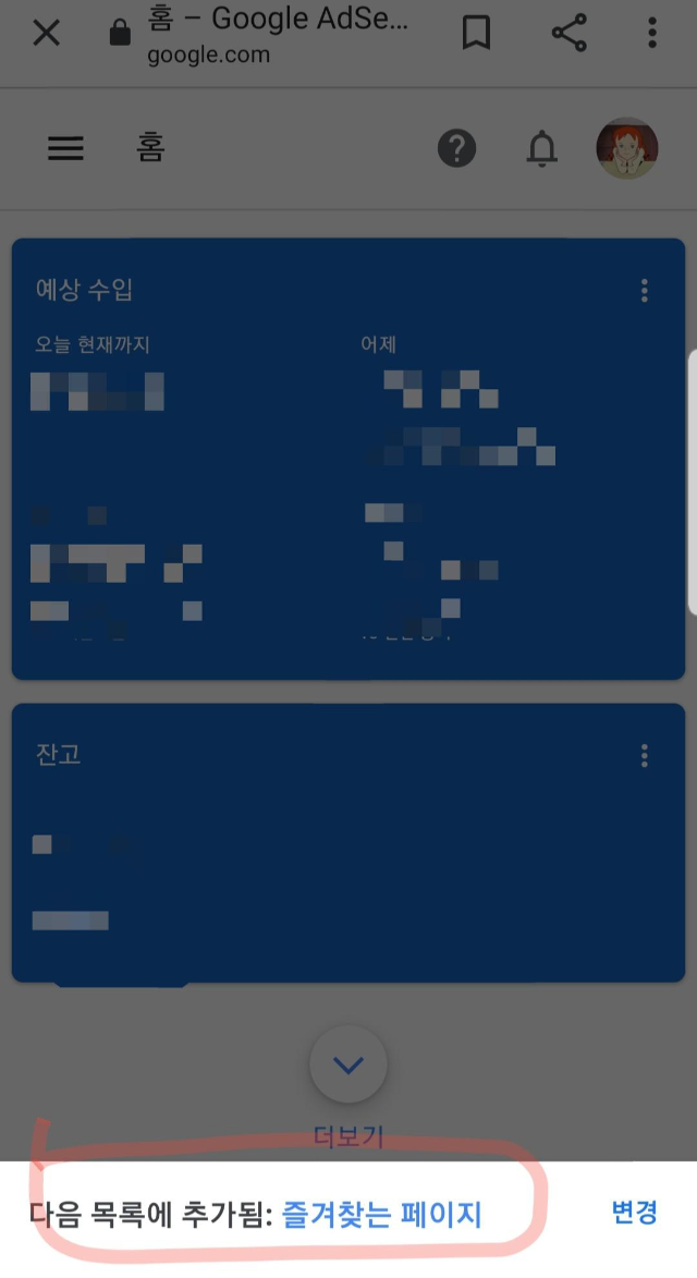 구글 애드센스 수익 확인 바로가기 생성하는 방법(스마트폰)