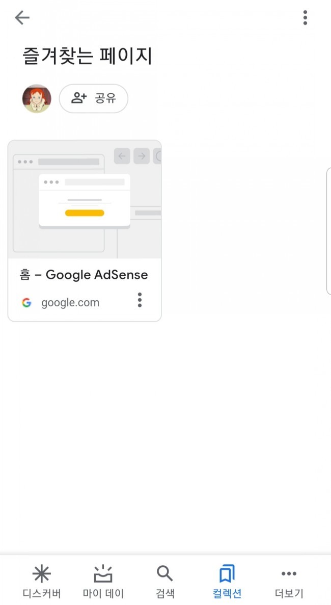 나의 구글 즐겨찾는 페이지에 구글 애드센스가 추가됩니다.