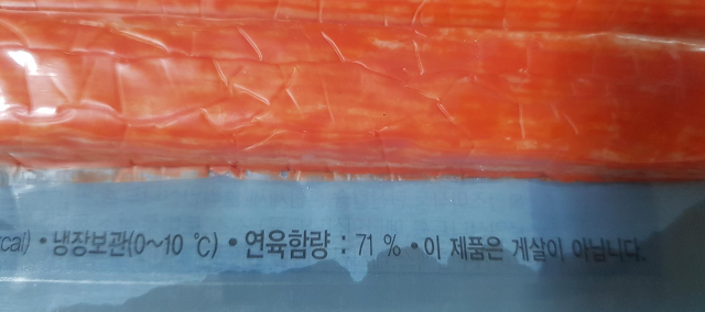 크래미는 연육 함량이 79% 정도라면 제가 산 맛살은 연육 함량이 71% 정도더라구요.