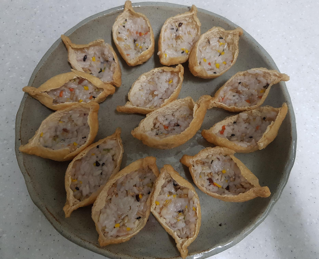아이들 어릴 때 유부초밥 참 많이 만들었던 것 같아요. 현장체험학습 갈 때도 도시락 한편에 김밥이나 베이컨 말이랑 함께 몇 개 넣어 주기도 하고 말이죠. 시판용 유부초밥을 이용하면 참 간단하게 한 끼 만들 수 있지요. 소불고기 살짝만 넣어줘도 좋아하는 메뉴였답니다.