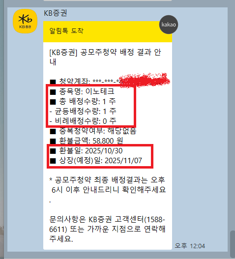 이노테크 공모주 최종 균등배정수량 결과 확인 (feat. KB증권)
