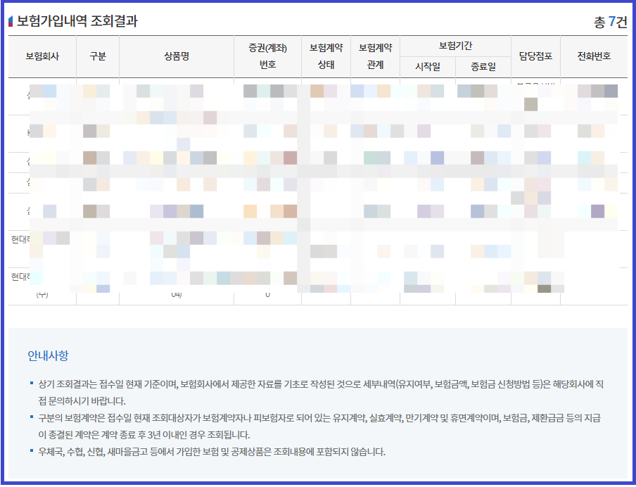 만기 된 보험, 해약된 보험, 현재 계약 유지 중인 보험까지 다 조회됩니다.