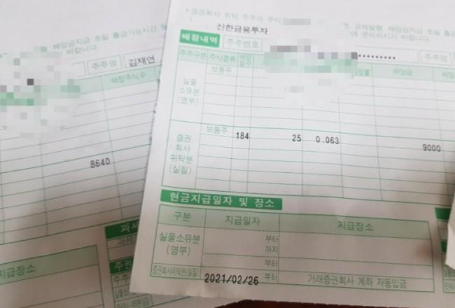 2021년 저의 첫 배당금은 2/26일 입금된 맥쿼리인프라였습니다. 아이들 계좌로도 소소하게 매수한지라 2월 어느 날 3장의 배당 통지서를 받았습니다.