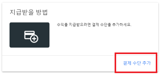 우측에 지급받을 방법 - 결제수단 추가를 클릭합니다.