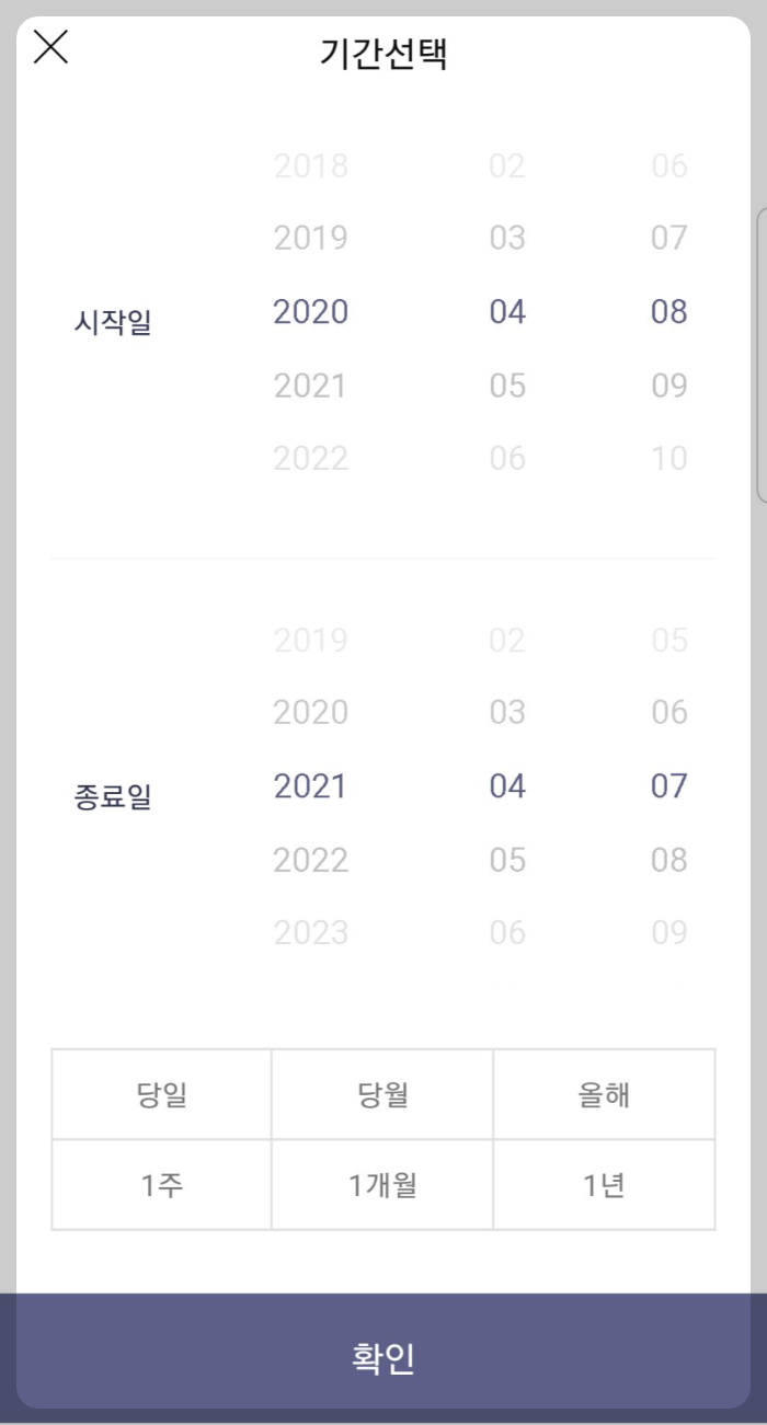 날짜를 클릭해서 원하는 조회 기간을 선택합니다. 저는 1년으로 조회를 해보겠습니다.