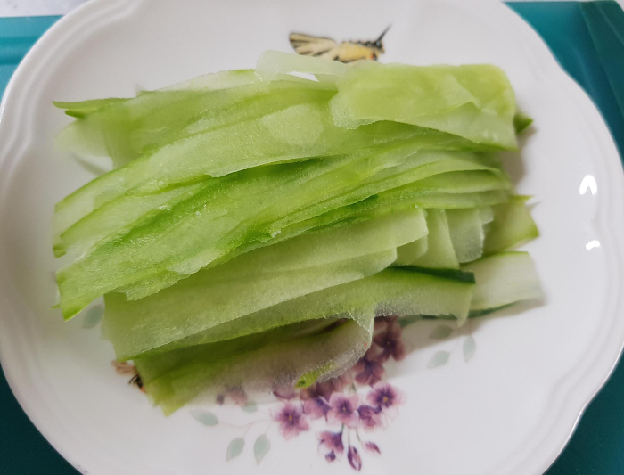 오이의 아삭함과 상큼함을 좋아해서 전부 다 넣었어요.