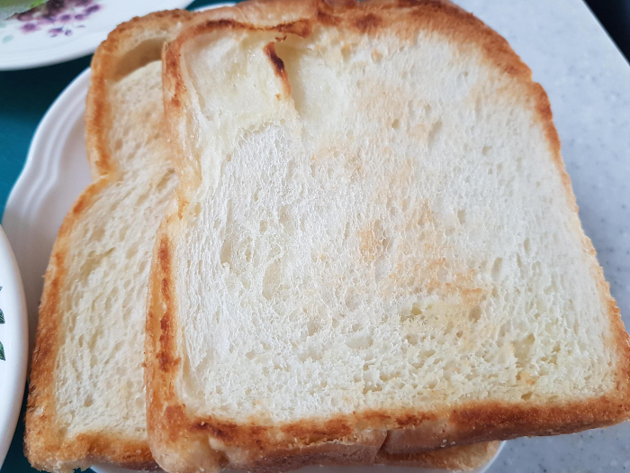 버터 발라져 있는 식빵이라 살짝 프라이팬에 구웠답니다.