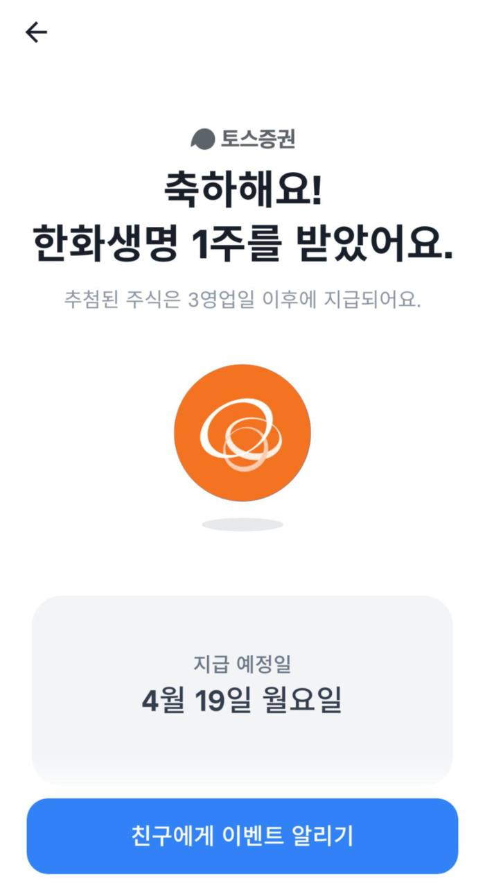 짜잔 전 한화생명 1주를 받았네요.
