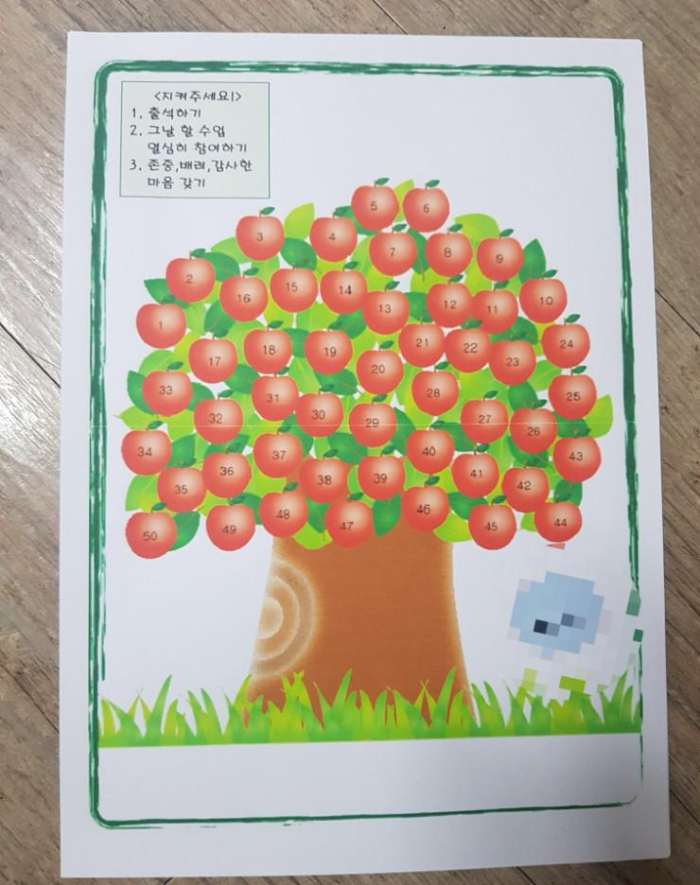 비록 뜨겁게 달궈지는 시간이 좀 길어지긴 했지만 코팅은 잘 되니 앞으로 몇 년은 더 버텨주길 바라며 다음 주 필요한 칭찬 스티커판 8장을 코팅해본다. (수업 빠지지 않고 나오길 독려하는 차원에서 준비한 칭찬 스티커판이다.)