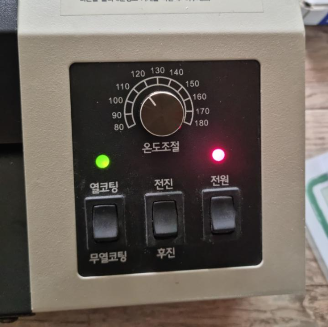 내가 쓰고 있는 코팅지는 110도에서 사용하면 되는 제품이다. 따라서 굳이 높은 온도는 필요 없어 보였는데 변경되었나 보다.