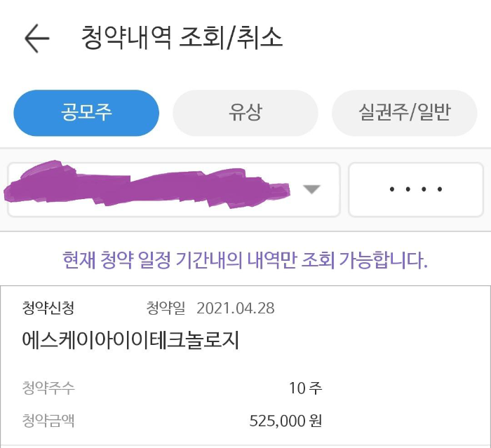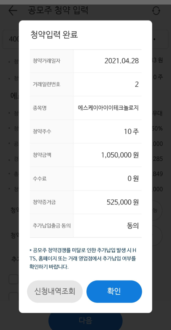 | SKIET(에스케이아이이테크놀로지) 공모주 청약 - 미래에셋증권&한국투자증권 공모주 청약방법(feat.공모주 청약 첫 도전!) (18) | 2021.04.27 |