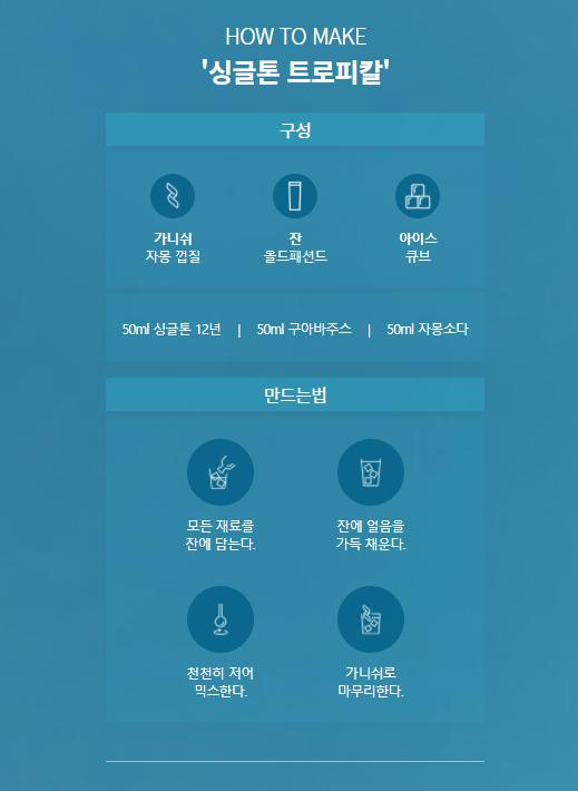 저에게 어울리는 칵테일은 '싱글톤 트로피칼'이라고 합니다.