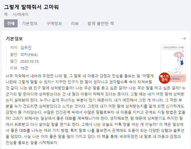 '그렇게 말해줘서 고마워' 란 책이 어떤 책인지 궁금해서 검색해보았어요.