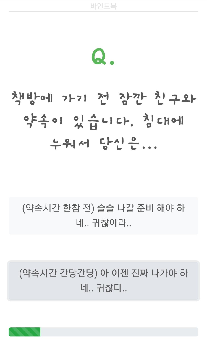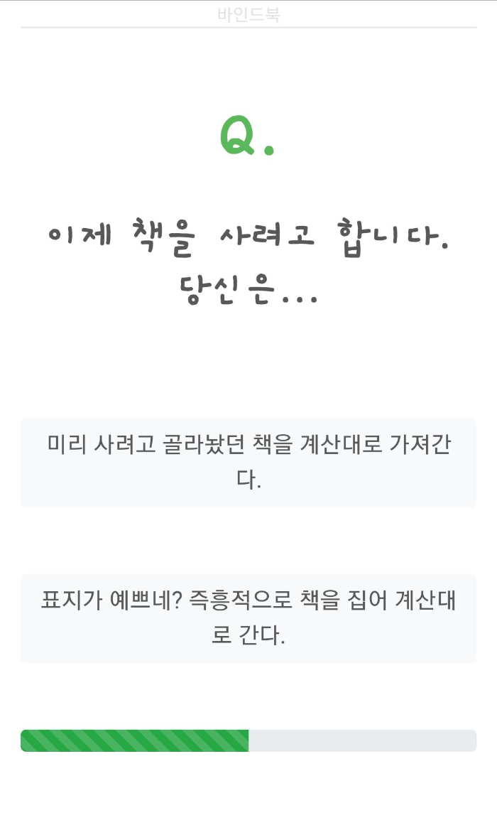 동네 책방에 간다면 나는 과연 어떤 동물인지 알아보고 자신과 어울리는 동물 친구를 찾는 테스트, 동네책방 동물 유형 테스트( 바인드북 독서취향 MBTI테스트)입니다.