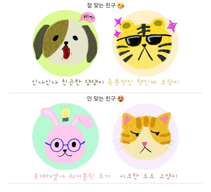 잘 맞는 친구와 안 맞는 친구도 나오네요.