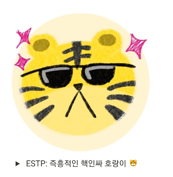 잘 맞는 친구 : 신나신나 친근한 댕댕이는 ESEP, 즉흥적인 핵인싸 호랑이 ESTP