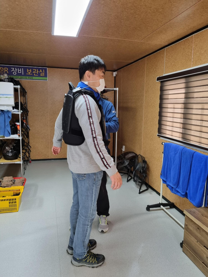 이제 직접 체험하기 위해 보호장비를 착용합니다. 비비탄 총이기에 사실 조금 걱정도 되긴 했습니다.