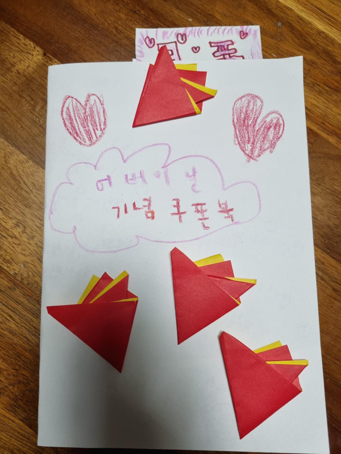 표현하는 법을 잘 모르는 우리 세대와는 달리 우리 아이들에겐 더 많은 사랑 표현을 하리라 다짐하는데 아이들도 이렇게 표현해주니 고맙고 감사하고 기뻤다.