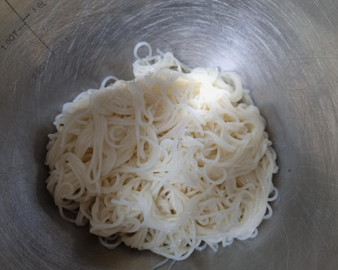 볼에 삶은 소면을 넣고