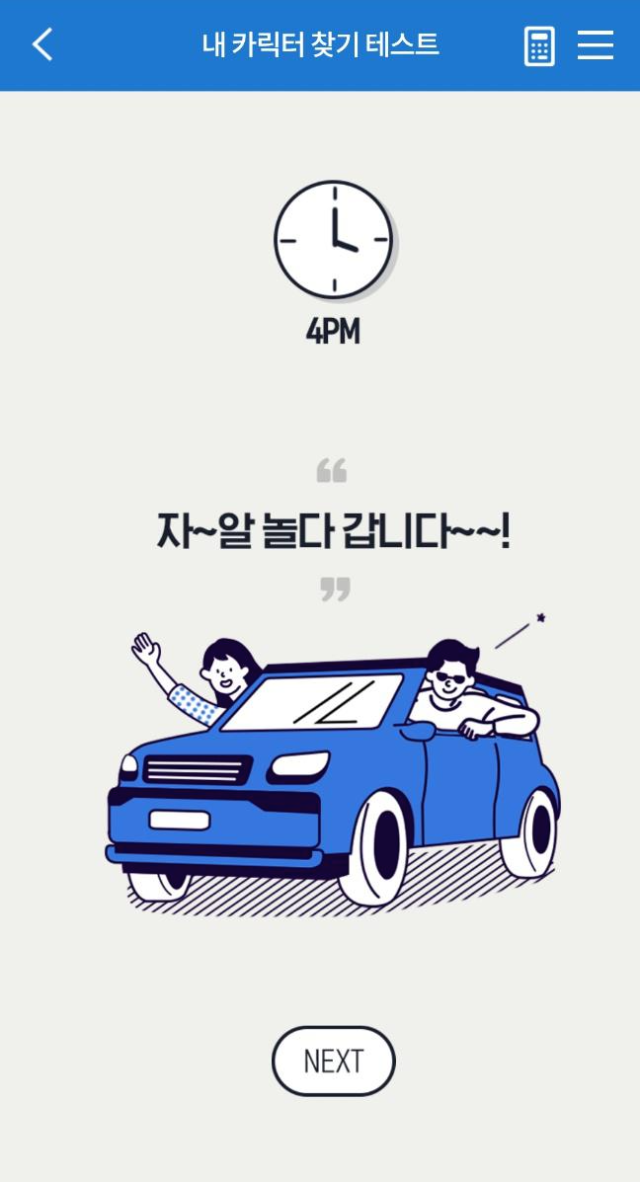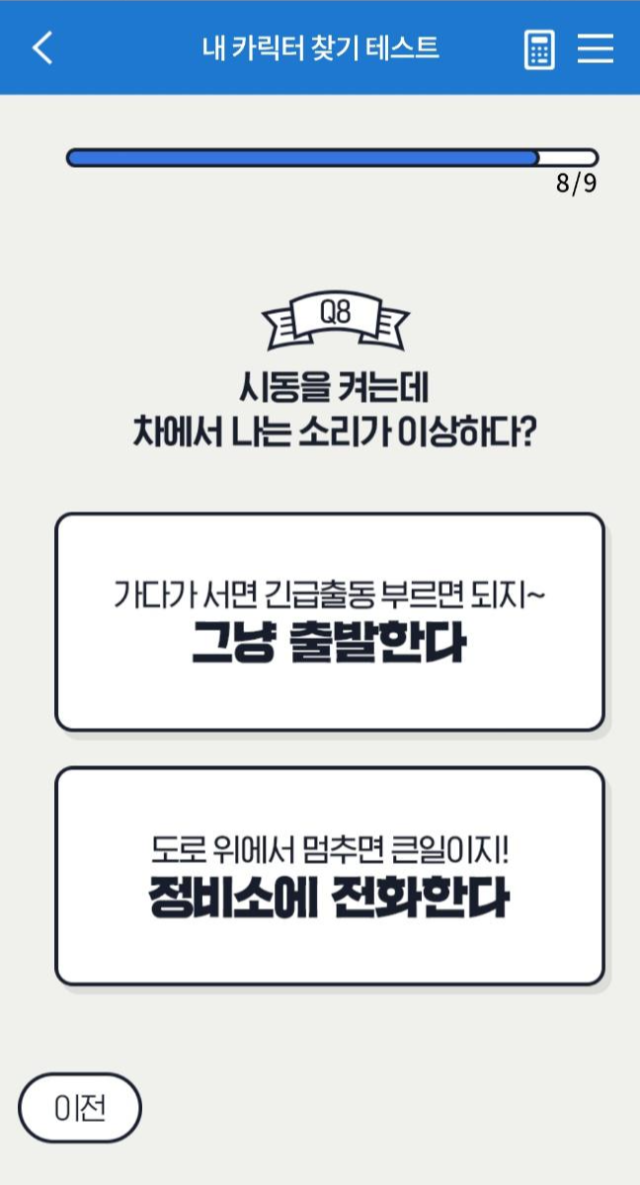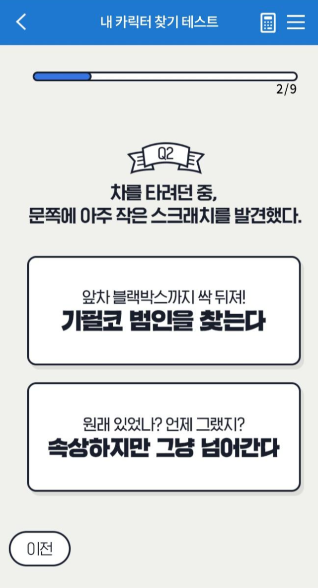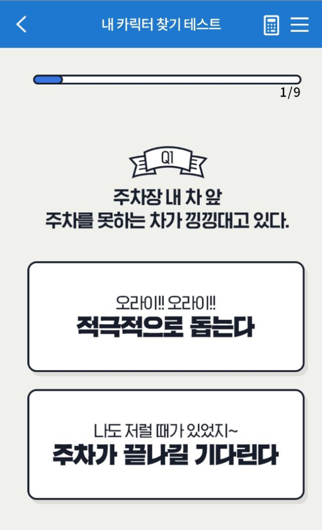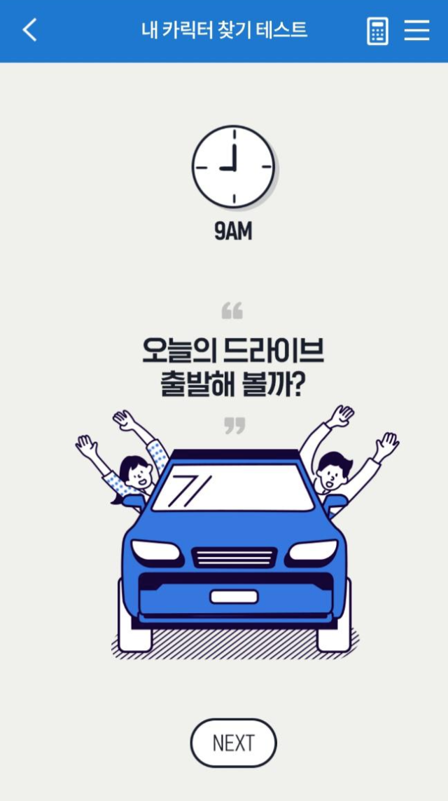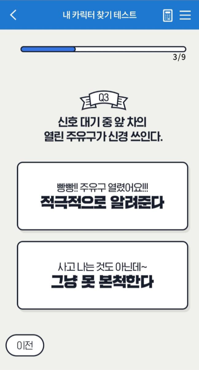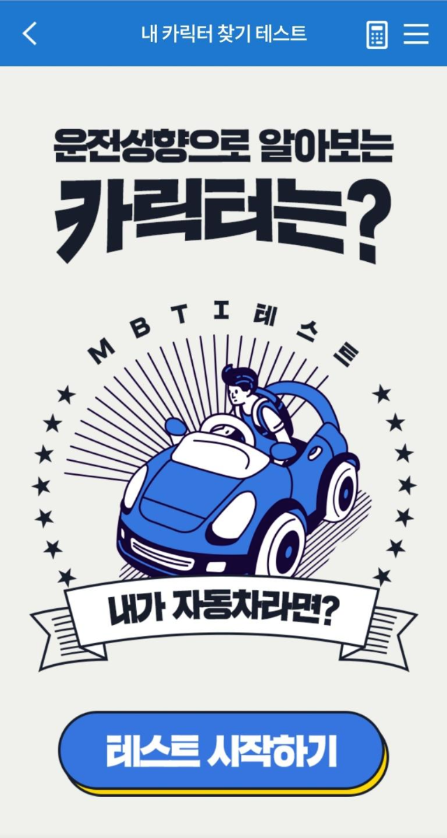 이제 운전성향으로 알아보는 내 카릭터 찾기 테스트 시작해봅니다.