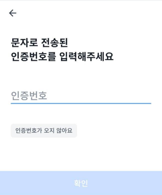 문자로 전송된 인증번호까지 입력하고 확인을 누릅니다.