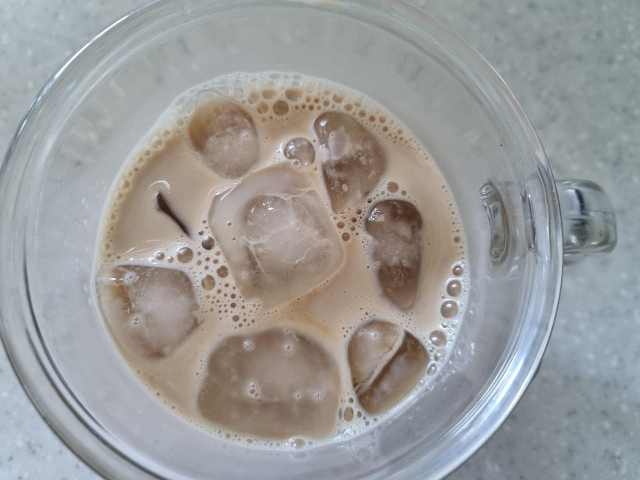 쉽게 아이스 까페라떼가 완성이 되네요.