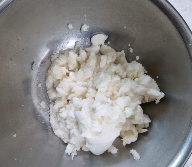 남은 전분을 걸렀던 건더기와 함께 섞구요 이때 소금 약간 넣었어요. 잘 섞어 주세요.