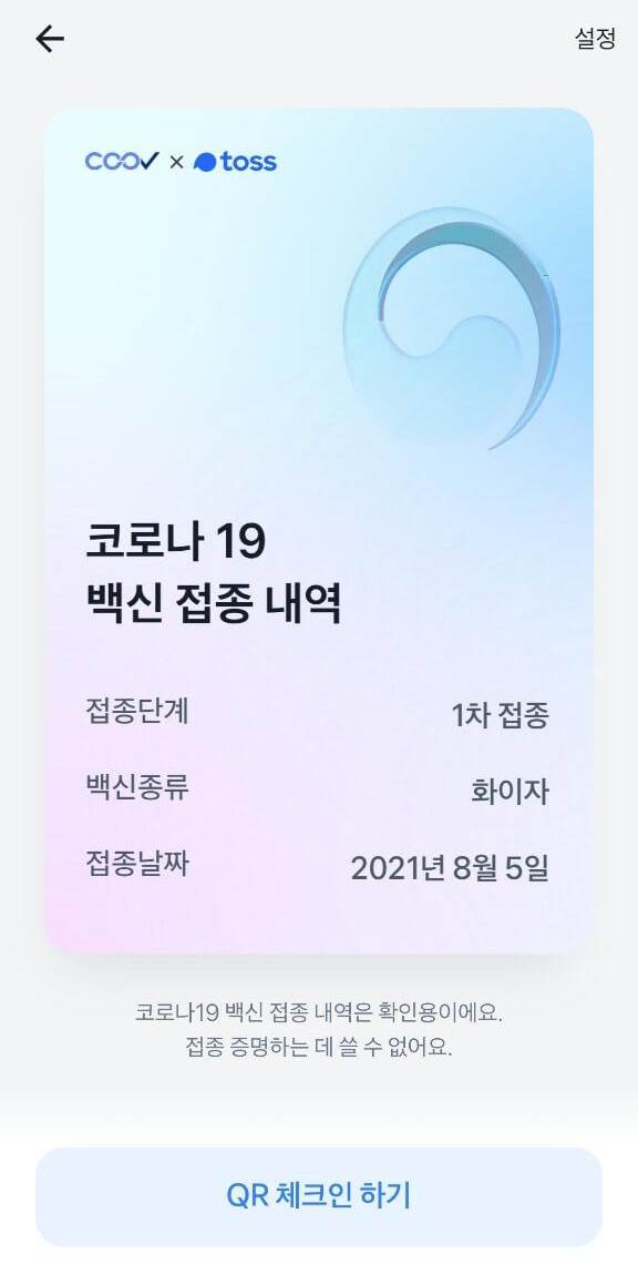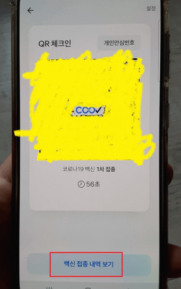 예전에는 QR체크인만 되더니 이젠 입장을 위한 QR × COOV 로 바뀐 걸 확인할 수 있습니다. 저는 이미 코로나19 백신 접종 여부를 불러와서 1차 접종이라고 뜨네요. 백신 접종 후 '접종 정보 불러오기'를 꼭 눌러주세요.
