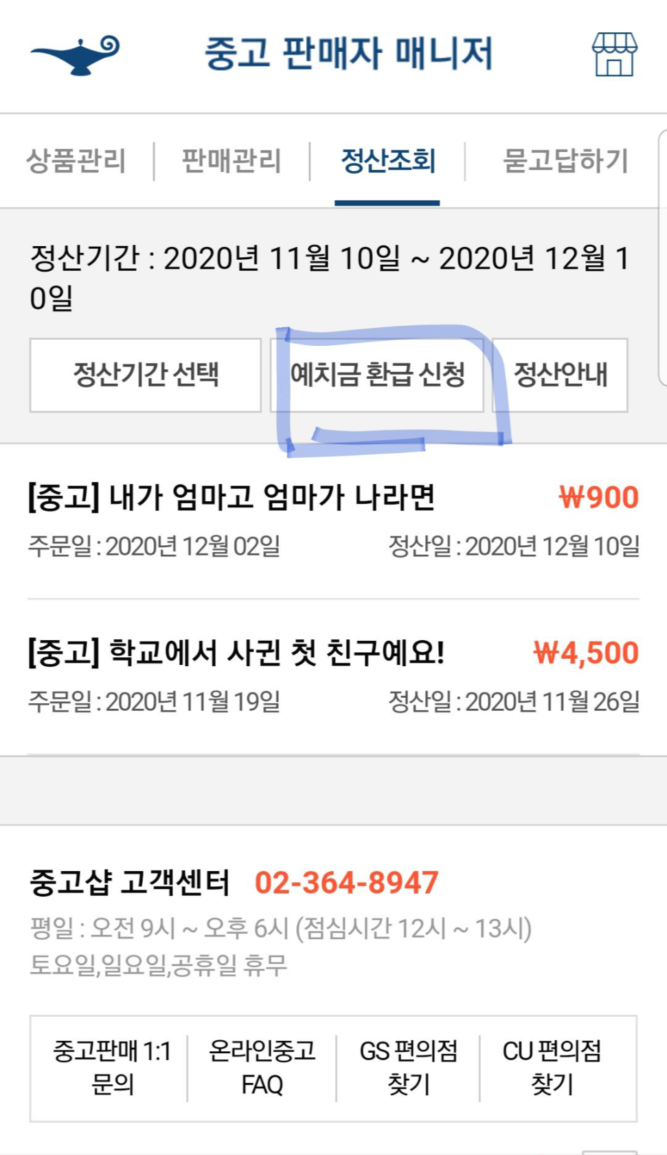 마침 오늘 정산되었다는 문자가 와서 예치금 환급 신청을 해본다.