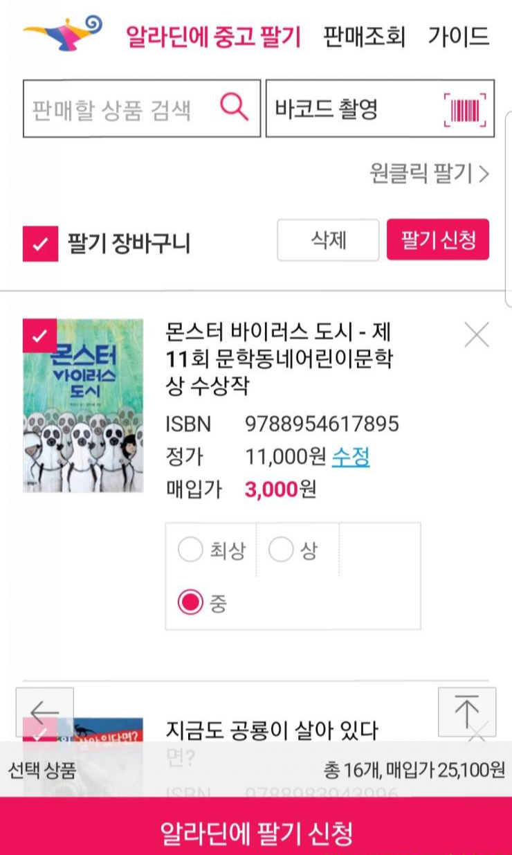 아래처럼 책 품질에 따라 최상/상/중으로 선택할 수도 있다.