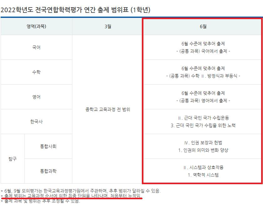 2022년 고1, 고2 6월 모의고사(전국연합학력평가) 출제 범위 알아보기