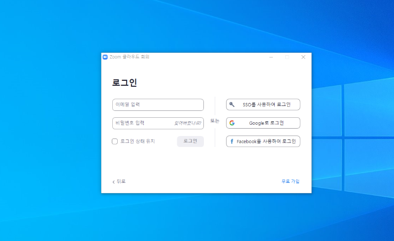 로그인 - 호스트가 되어 줌 회의방을 개설하고자 할 때 회원 가입해서 가입한 이메일로 로그인해야 함.