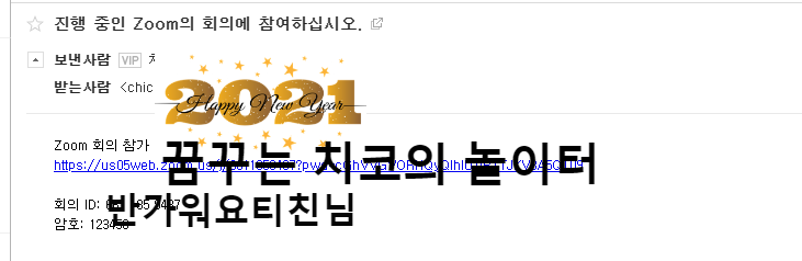 메일을 받은 사람은 링크를 클릭한 뒤 회의 ID(10자리)와 암호를 입력하여 회의방에 들어갈 수가 있다.