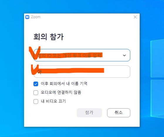 여기까지 기본적으로 ZOOM화면에 들어가는 방법이다.