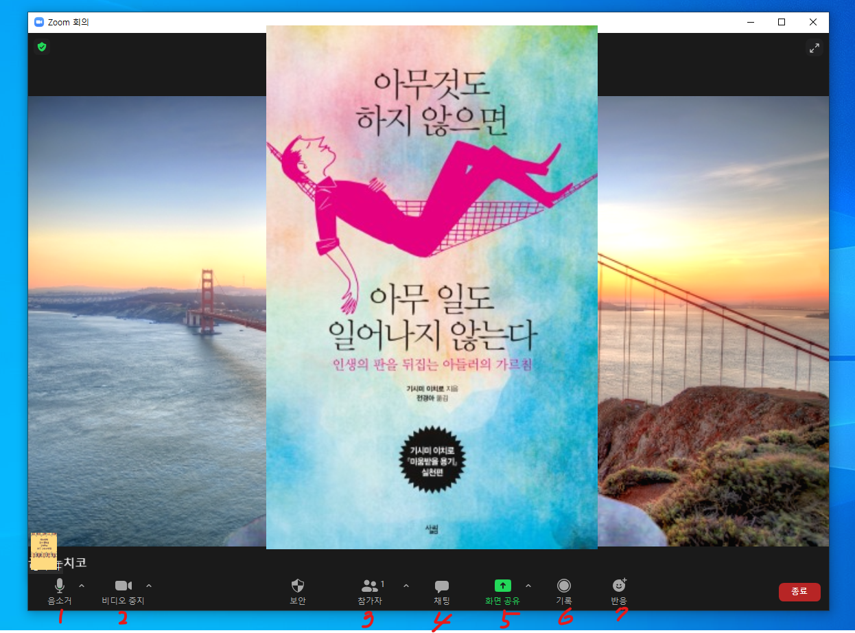 다음은 ZOOM회의방에 들어가 이것저것 눌러보며 몇 가지 확인한 내용들을 적어본다.
